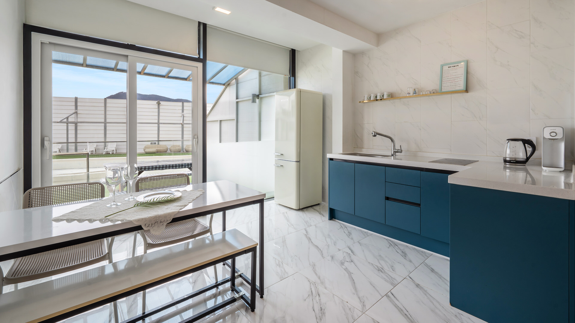 - 집기품목 : 욕실용품, 남녀공용, TV, 금연, 냉장고, 에어컨, 전기밥솥, 취사시설/도구, 전자레인지, 커피포트, 인덕션, 정수기, 애견 배변패드, 애견식기류, 와이파이, 샴푸, 비누, 린스, 바디워시, 치약, 타월, 침대방, 식탁, 산전망